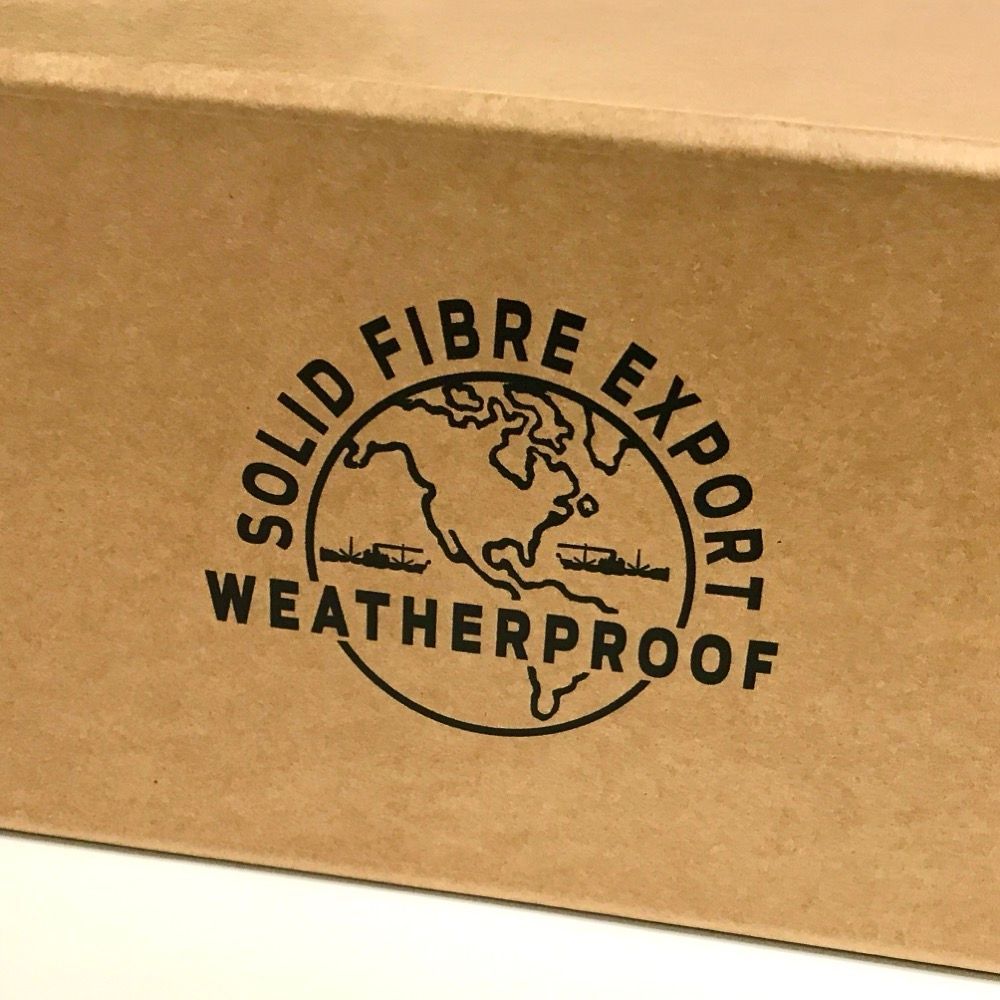 The solid cardboard used is 2.5 millimeter thick and is of heavy quality and has brown kraft paper on both surfaces. It is not, however, weatherproof like the originals. A light coat with a clear matt varnish might make the box water resistant and more durable. This box can probably be used several times.
